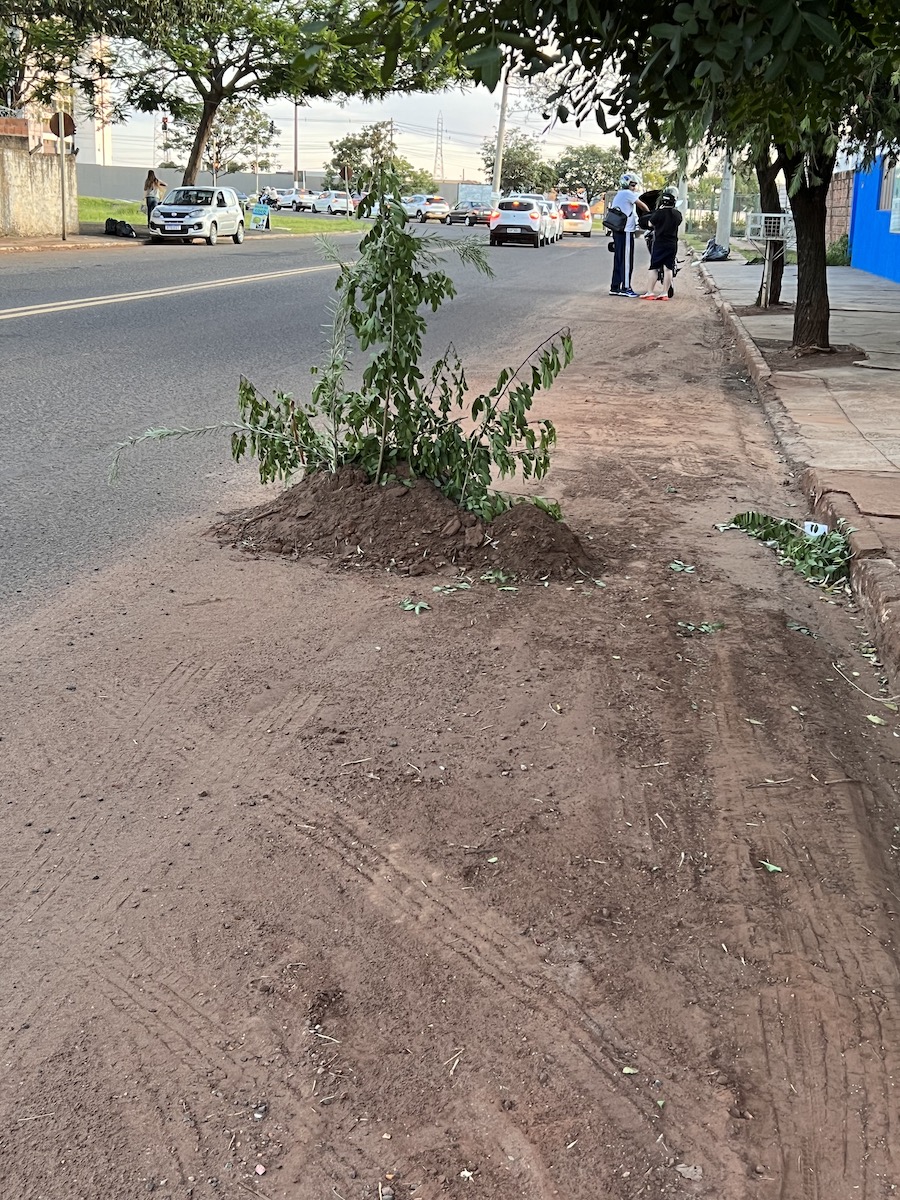 Por ironia ou não, é apenas um acúmulo de terra, organizado pelos moradores, e devidamente sinalizado, para evitar acidentes, enquanto esses mesmos moradores providenciavam, com inadequadas ferramentas, a retirada de toda essa terra.